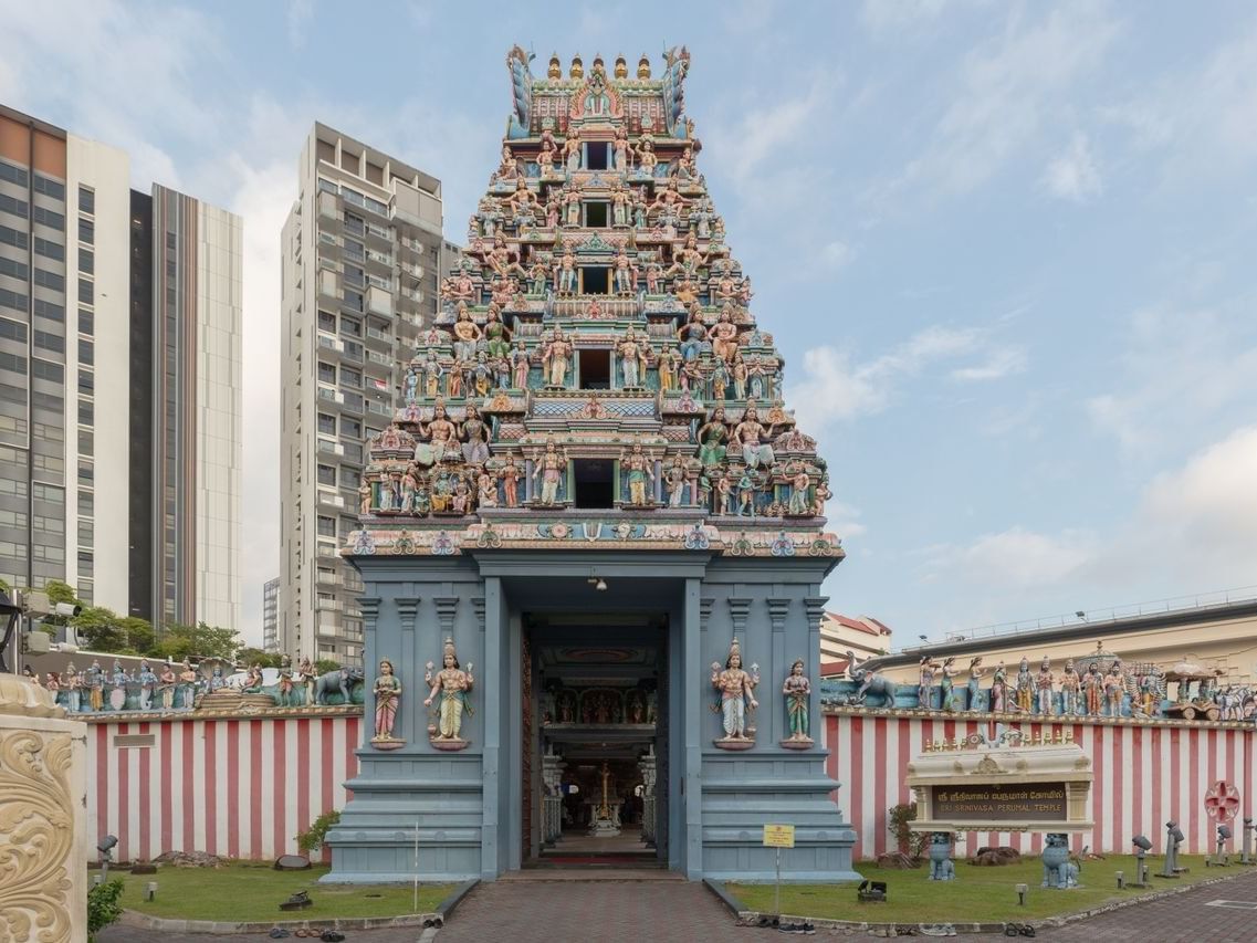 Located just 5 minutes from One Farrer Hotel, Sri Srinivasa Perumal Temple is one of Singapore’s oldest Hindu temples, built in 1855 on land purchased from the East India Company. Its striking five‑tier gopuram, completed in 1966, showcases colourful sculptures depicting the avatars of Lord Vishnu. Gazetted as a National Monument in 1978, the temple remains a cornerstone of Little India’s cultural heritage and serves as the traditional starting point of the annual Thaipusam procession.